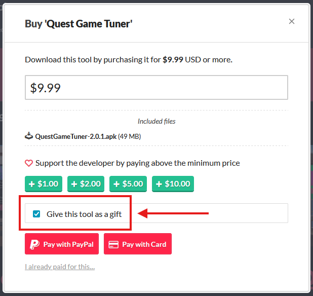 2. Check Give this tool as a gift