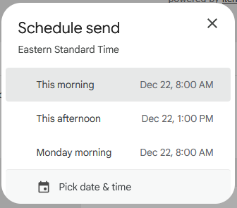 Finally, schedule-send the message.